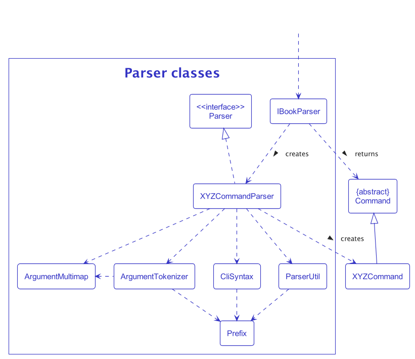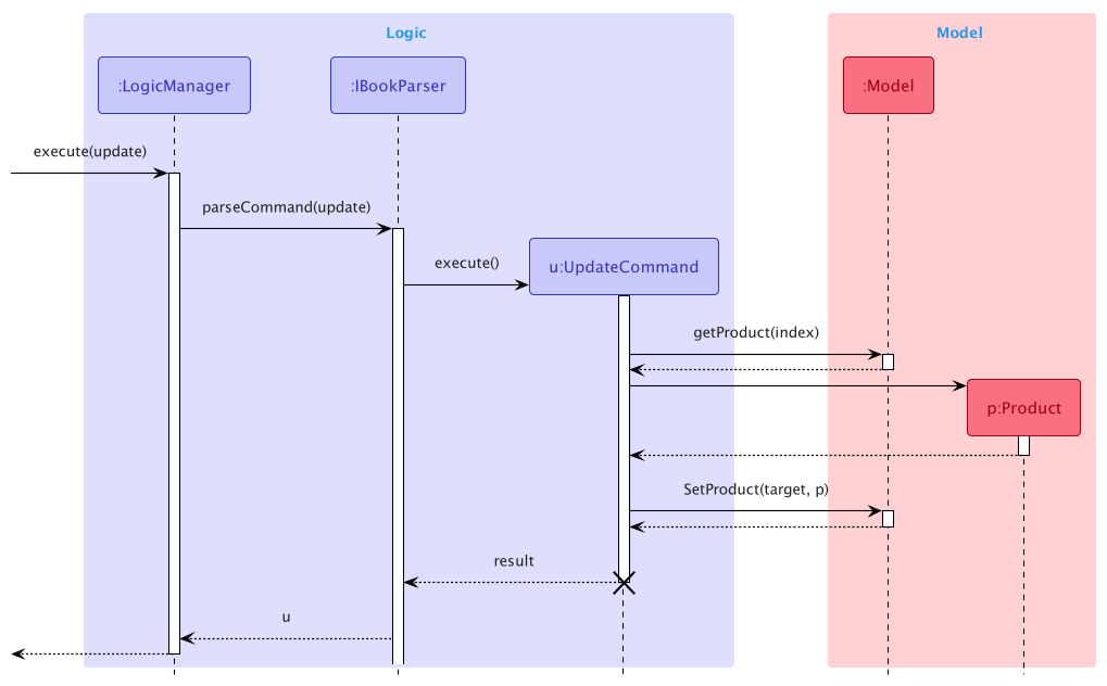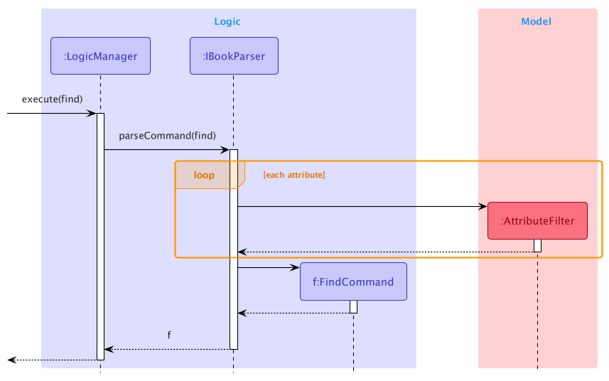Logicis called upon to execute a command, it uses theIBookParserclass to parse the user command. - This results in a